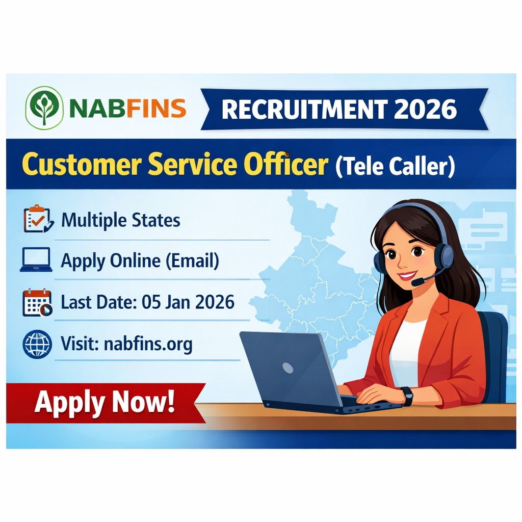 Eligible and interested candidates can apply for the NABFINS Customer Service Officer Recruitment 2026 through the prescribed application process before the last date, 05 January 2026. Applicants are advised to read all details carefully before applying to ensure they meet the required criteria.